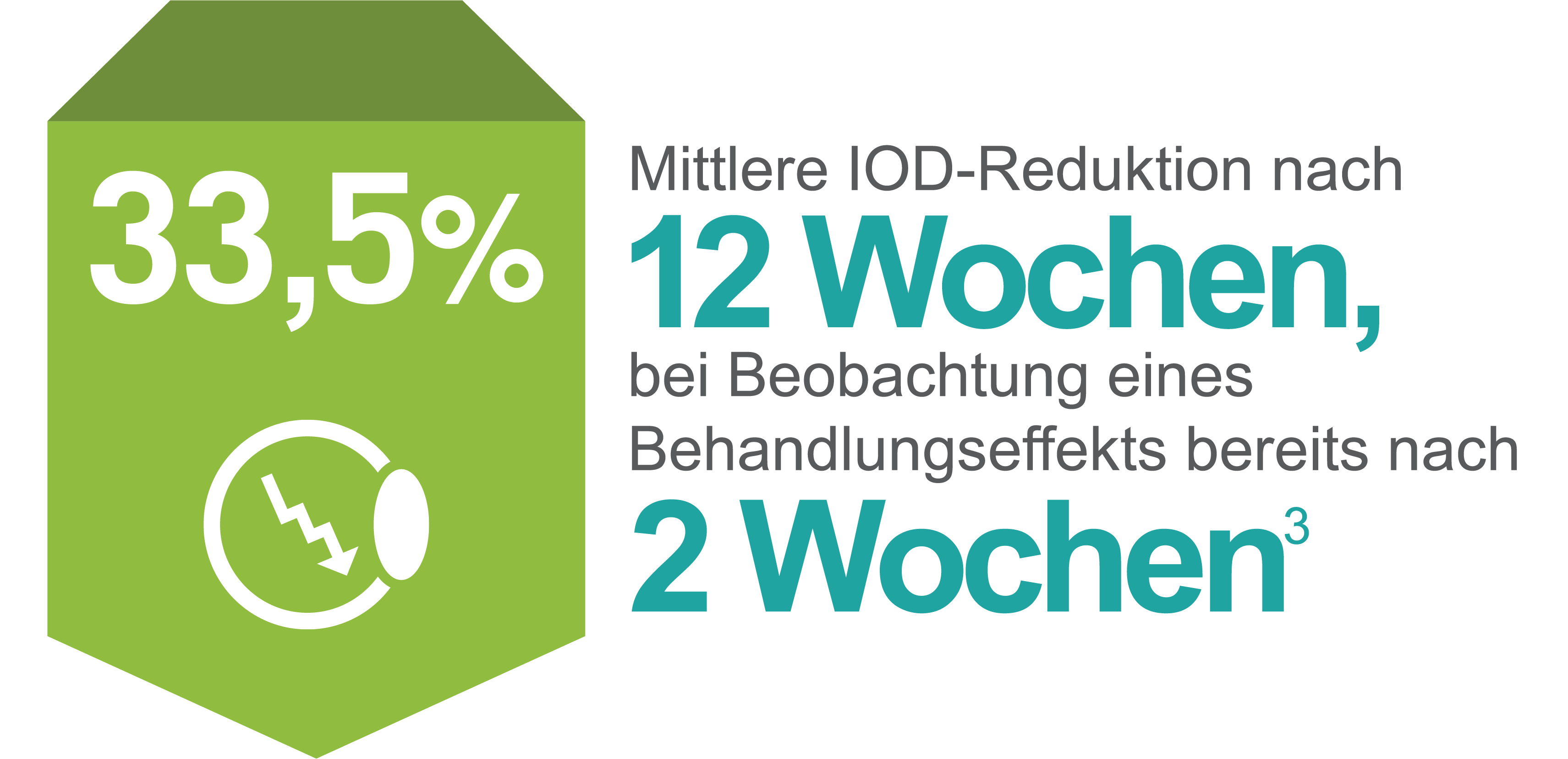 Eine 25%ige Reduktion des IOD wurde bei 70 % der Augen beobachtet.2