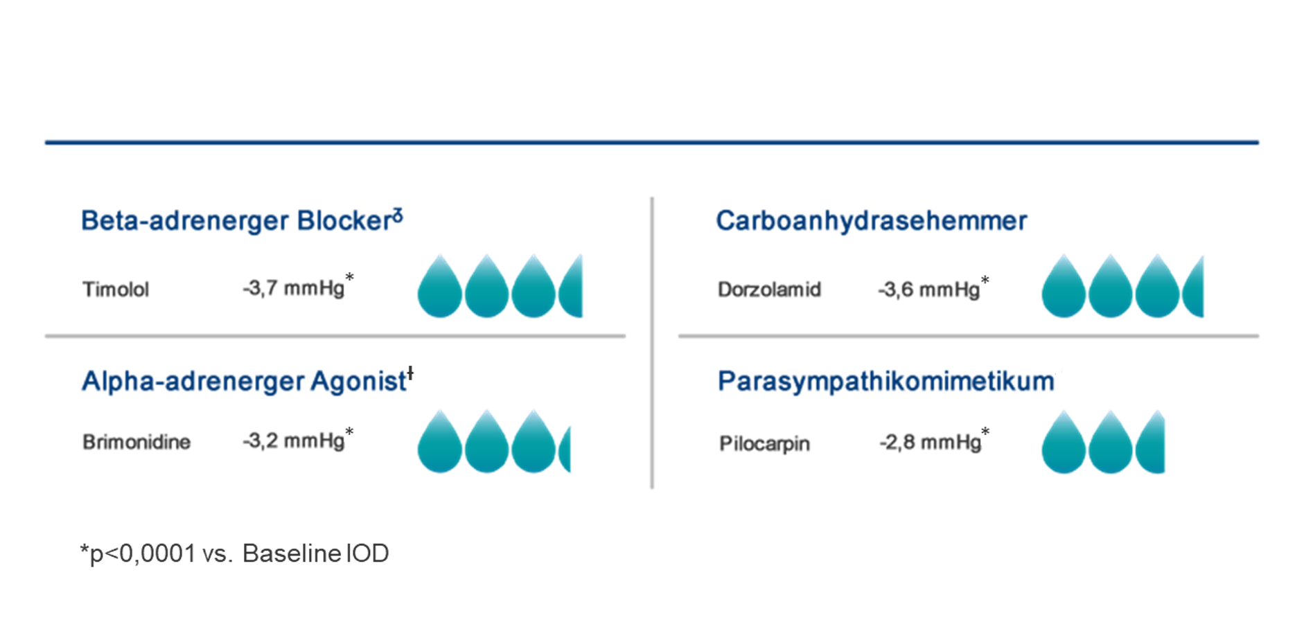 † Weitere untersuchte alpha-adrenerge Agonisten waren Clonidin (-4,0 mmHg) und Dipivefrin (-5,1 mmHg).4