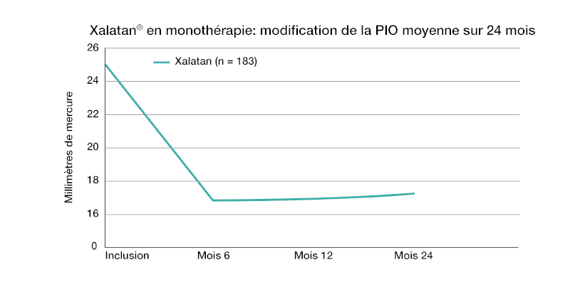 En monothérapie, Xalatan® a permis de réduire significativement la PIO pendant 2 ans1.