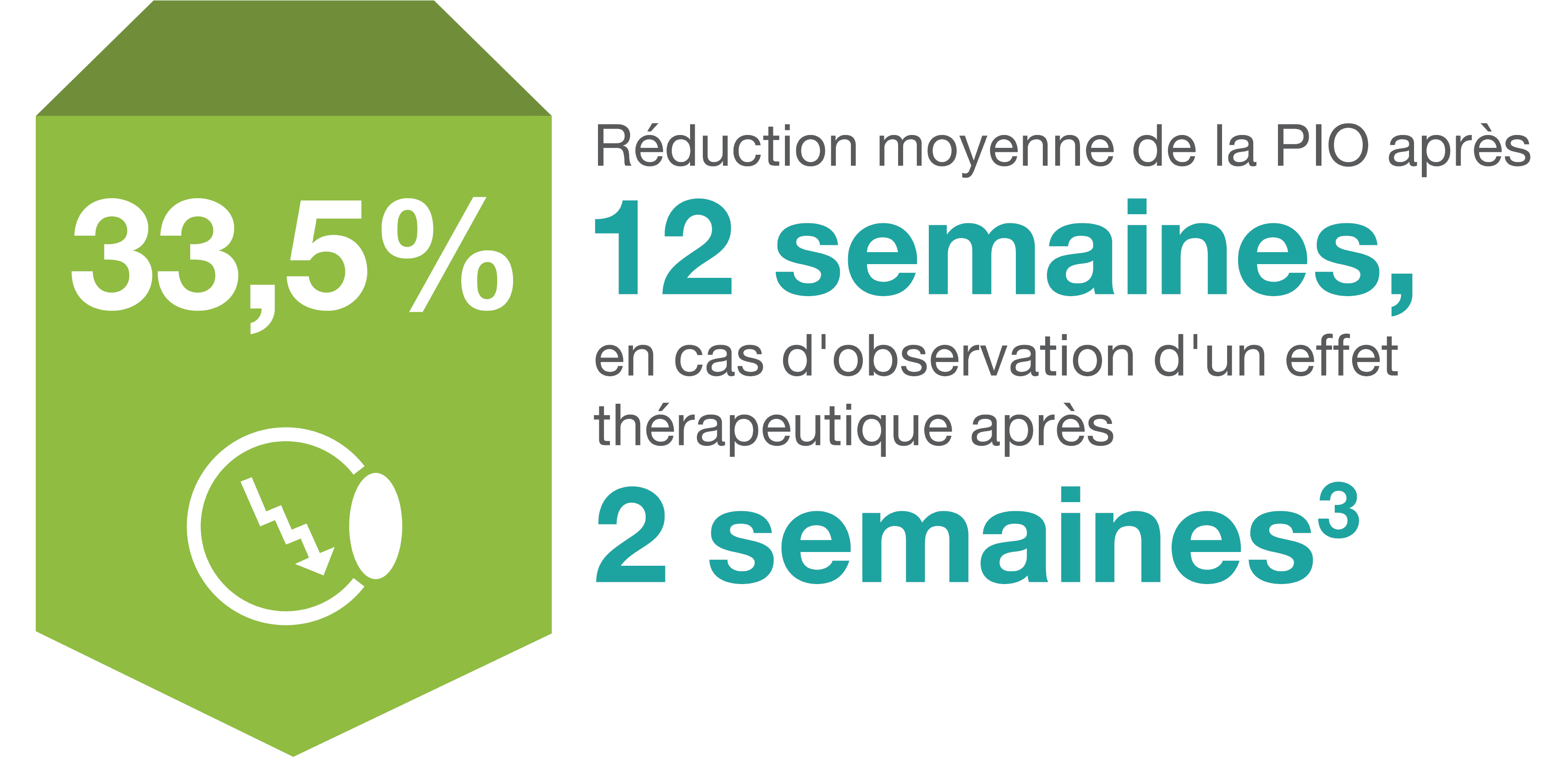 Une réduction de 25% de la PIO a été observée pour 70% des yeux2.